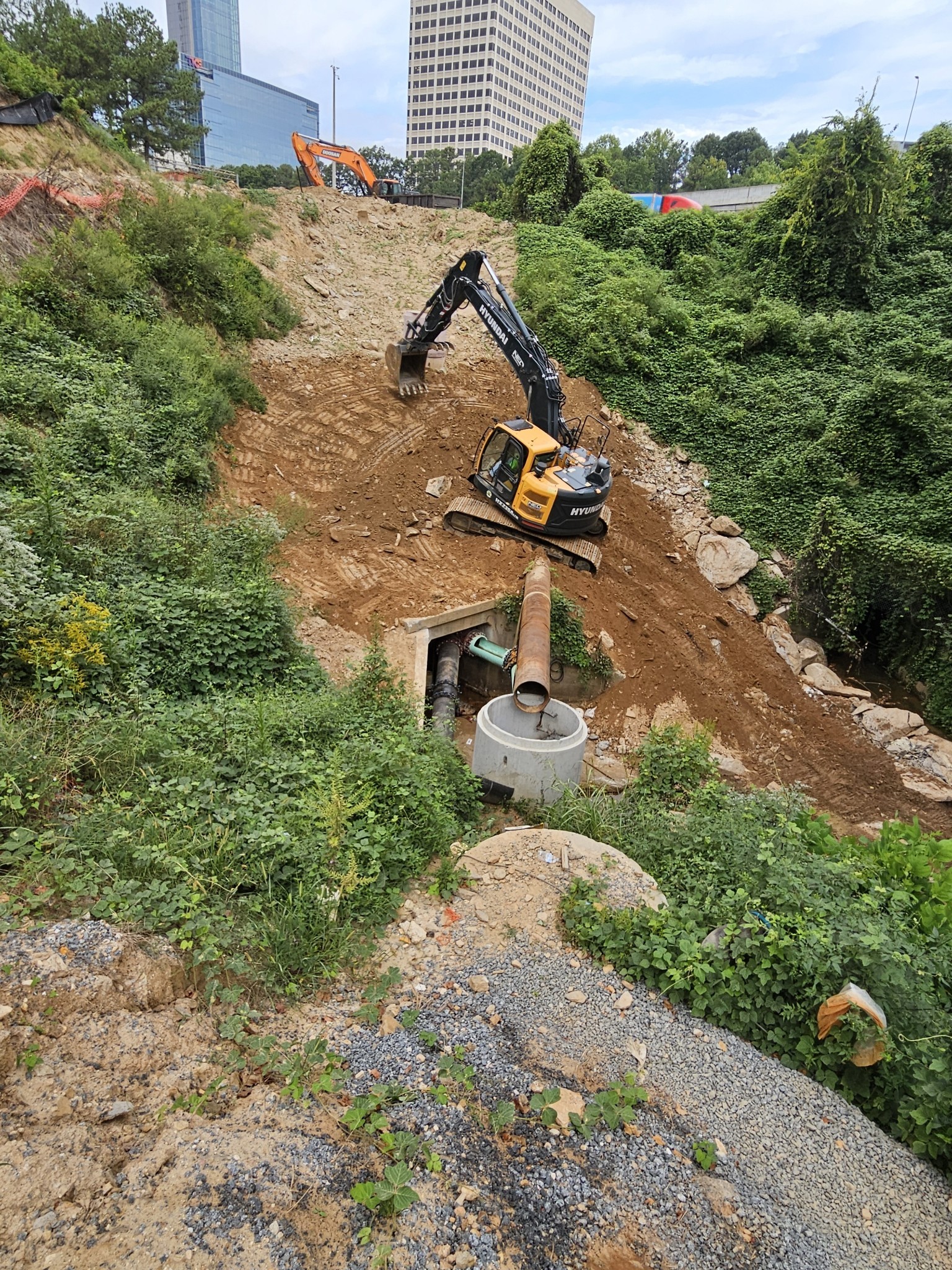 This project is a sewer replacement for Cobb County. It includes 500lf of 84” tunnel with shafts, 600’ of open cut ductile pipe -30”, 1,400’ of 18 FPVC to be installed inside of a 7’x7’ box culvert, as well as a bypass system to carry all of the sewer during construction.